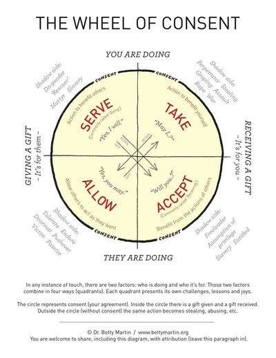 The Wheel of Consent®, developed by Dr. Betty Martin, is a transformational framework and embodiment practice that has reshaped how we understand consent, relational dynamics, boundaries, desire, and empowered choice. It is used globally in schools, universities, therapeutic programs, somatic practices, and community organizations.
